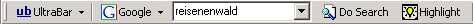 die Ultrabar das Suchfenster, dazu eine Auswahl an