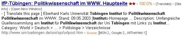 Seite in mehr als einer Suchmaschine enthalten war. Mit einer